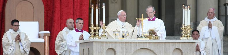 The Mass celebrated by Pope Francis on the East Portico of the Basilica of the Immaculate Conception on Sept. 23, 2015, was historic for many reasons. It was the first public Mass celebrated by Pope Francis in the United States, the first time in this country that the congregation for a papal Mass has gathered on a university campus, and the first canonization to take place in the United States.