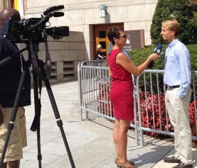 After the official press conference, members of the media were invited to interview representatives of the Catholic entities that will host Pope Francis in Washington. Frank Persico, vice president for University relations and chief of staff, spoke with NBC 4, WNEW Radio, the Associated Press, and others about the University’s preparations for the visit. Persico has witnessed the two other papal visits to CUA: Pope John Paul II in 1979 and Pope Benedict XVI in 2008.