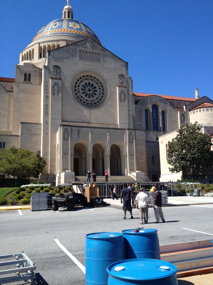 The parking lot behind McMahon Hall is usually filled with cars belonging to students, faculty and staff, but over the next couple of weeks, the lot will be filled with equipment needed to prepare for Pope Francis’s Sept. 23 visit to Catholic University.