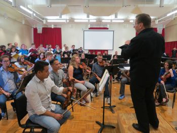 Professor Simeone Tartaglione is conductor of the orchestra, which is composed of 40 students, faculty, and alumni. The orchestra began rehearsals on Sept. 3.