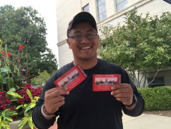 Student Victor Esposito is seen with his tickets to view Pope Francis’s address to Congress from the Capital.
